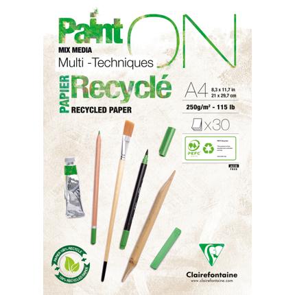 Clairefontaine PAINT ON Recycled Paper Pad – A4. 250g paper. Suitable for drawing, paint, ink, pastel and more. Acid free.