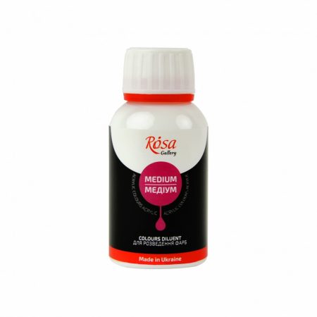 ROSA Gallery Acrylic Medium is intended for dilution of acrylic paints, as well as increasing the adhesion level between the base material and the colour layer. It has no effect on drying time and will dry clear. Improves elasticity and resistance and does not yellow over time.